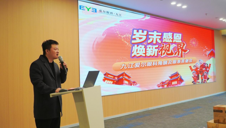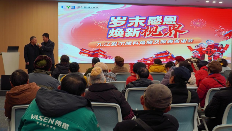 2026 年 1 月 18 日上午,九江爱尔眼科医院‘岁末感恩・焕新视界’角膜及眼表患教答谢会,在医院三楼会议厅温馨启幕。本次活动特邀角膜及眼表疾病患者与家属共聚一堂,通过科普分享、互动交流、温情回馈等形式,传递专业眼健康知识,答谢患者长期以来的支持与信赖。