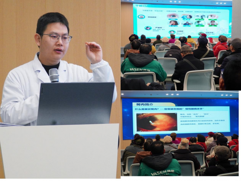 随后,陈威医生继续带来《翼状胬肉相关知识科普》,系统讲解了这一易被忽视的‘慢性眼表疾病’。他从病因、症状、发展趋势到治疗方案,层层深入,用通俗易懂的语言将复杂医学知识拆解为清晰易懂的要点,提升了患者对眼表疾病的认知与防治意识。